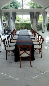 เช่าเก้าอี้ไม้ เช่าเก้าอี้ชิวารีCrossback เช่าโต๊ะเหลี่ยม   “Cross Back”