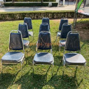 เช่าเก้าอี้บุนวม เช่าเก้าอี้งานแต่ง เช่าเก้าอี้จัดงาน สีกรมท่า สามารถคลุมผ้าสีขาวและโบว์สีทอง