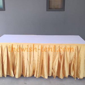 เช่าโต๊ะ-โต๊ะเหลี่ยมคลุมผ้าจับจีบสีทอง