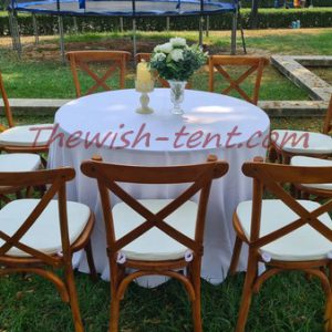 เช่าโต๊ะกลม-เก้าอี้ชิวารีครอสแบ็ค_เก้าอี้ไม้ครอสแบ็ค