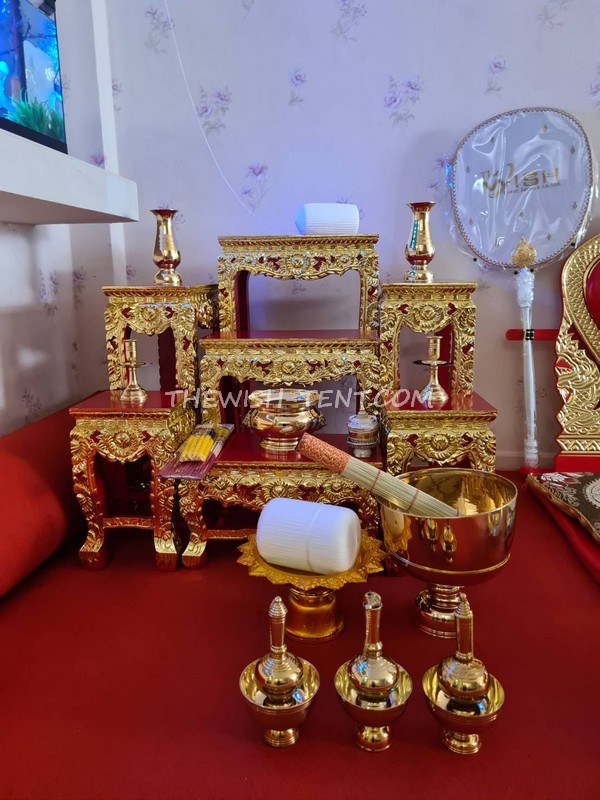 เช่าโต๊ะหมู่บูชา-หมู่7 สีแดง-ทอง หน้า 8  สีแดง-ทอง พร้อมอุปกรณ์ในพิธี