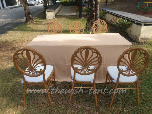 รายละเอียด ให้เช่าเก้าอี้ชิวารี-ควีนส์ เช่าโต๊ะเหลี่ยมผ้าคลุมสีทอง