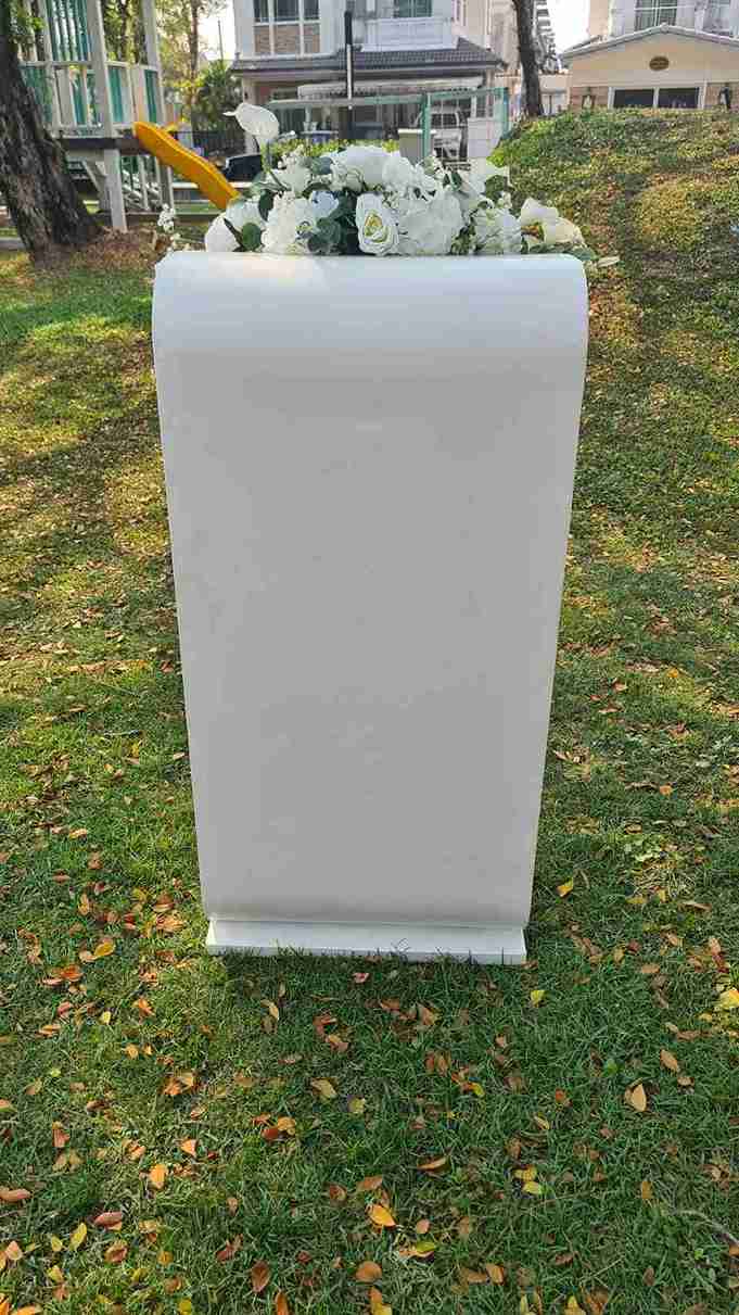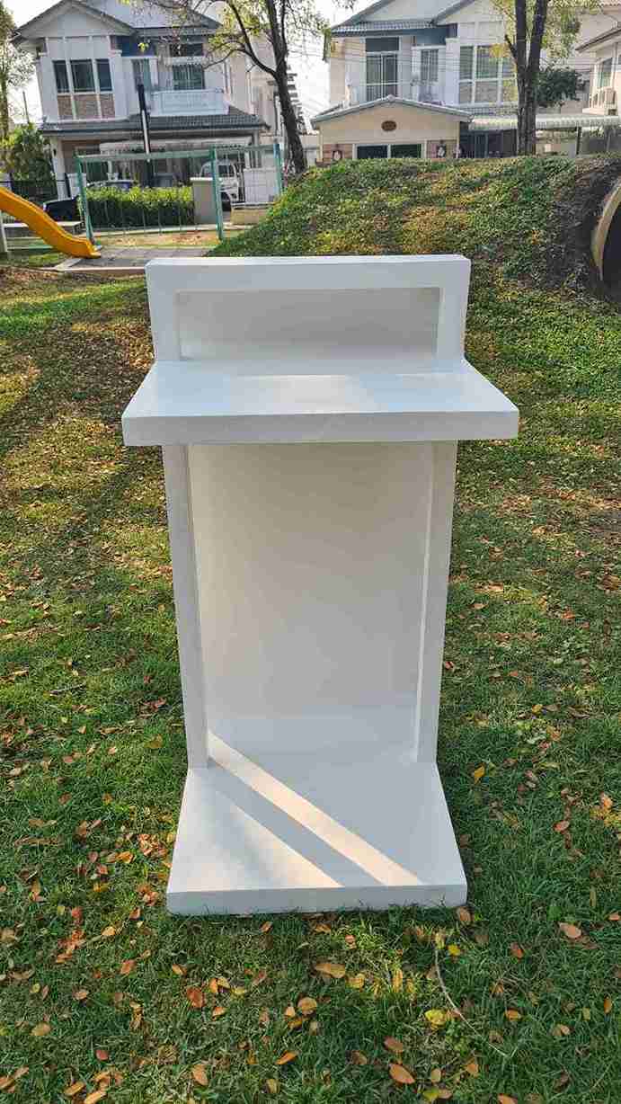 เช่าโพเดียม ไม้ สีขาว (แบบโค้ง) บริการให้เช่าอุปกรณ์จัดงานเลี้ยงครบวงจร